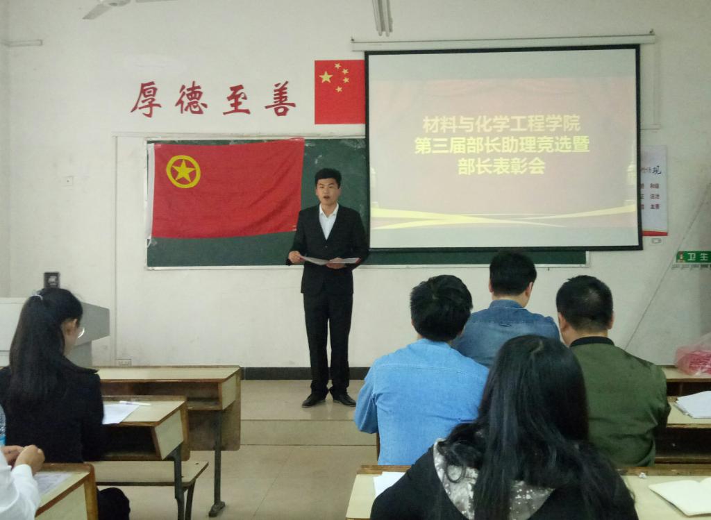 4月18日晚,PA视讯集团官方网站第三届部长助理竞聘会于鼎新楼2313隆重举行。出席本次竞聘大会的领导及嘉宾有:材化公司党总支副书记向芸、团总支书记郑照强;员工党总支副书记李金石、青协会长江昌华及材化学院员工会主席团成员,大会由材化公司员工会主席李金涛主持。