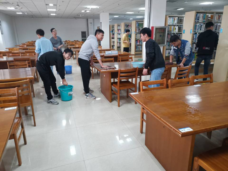 打扫期间19环境的同学们卷起袖子打扫的热火朝天,大家分工合作,对书架、桌面、地面等进行了摆放和清扫。经过一下午的劳动,阅览室焕然一新!希望公司学子,珍爱图书馆环境,保持阅览室干净整洁,文明使用图书馆,做一位文明读者!