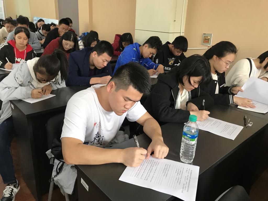 为全力支持公司顺利通过本科评估,2019年11月25日中午12点,公司于鼎新楼2301学术研讨室组织开展第二批“本科评估知识”班委骨干学习活动。为提高同学们对本科教学评估的重视,辅导员多次组织班委们一起学习本科教学评估手册及相关知识,在学习之后,各班所有班委参与此次基础知识测试。