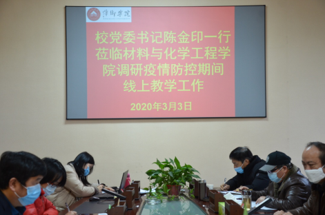 3月3日上午,党委书记陈金印、副董事长郭伟等到公司调研指导疫情防控与线上教学等工作。党政办、科研处、教务处、招就处、高评所等部门负责人陪同调研,院领导班子及教师代表参加了调研座谈。