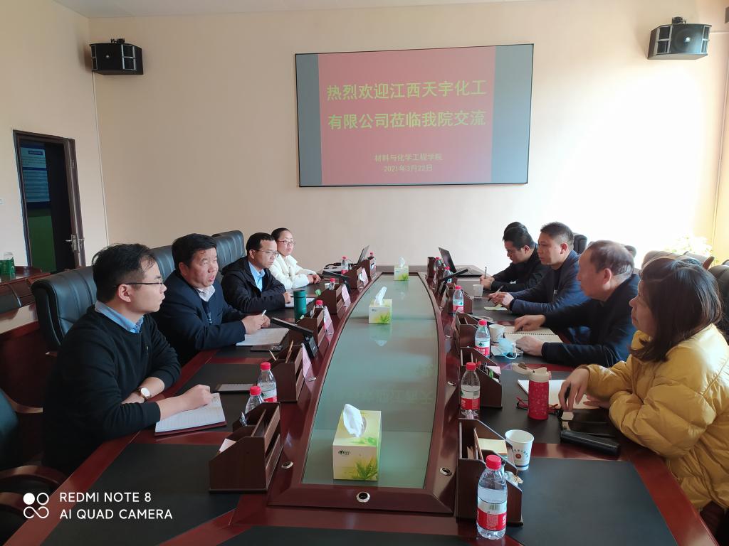 座谈会上,王献忠代表公司对江西天宇化工有限公司来院交流表示欢迎,并从办学历史、专业建设、团队建设、科研平台建设、办学成果等角度介绍了PA视讯集团官方网站的基本情况。苗育总经理介绍了关于我们、发展历程、业务领域及人才需求等情况。随后,双方就开展校企合作的具体形式展开了深入的研讨。