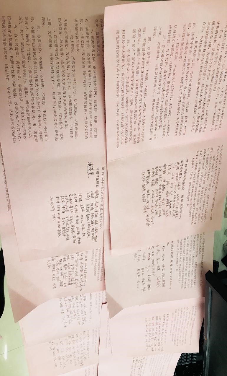 在交流讨论环节,同学们大胆说出自己的想法,校庆来临之际,我能做什么,我该怎么做。加强对教室和寝室的督察,服装整洁,注意自己的仪容仪表,言行要得体,要有大局意识,奉献意识,要全力积极投身志愿服务,用饱满的热情参与其中,团结协作,认真参与各项活动。同时,各班级分别组织全体同学签订“助力校庆、我在行动”承诺书