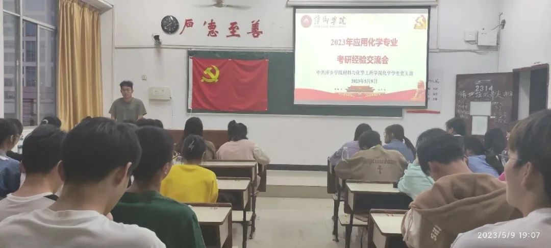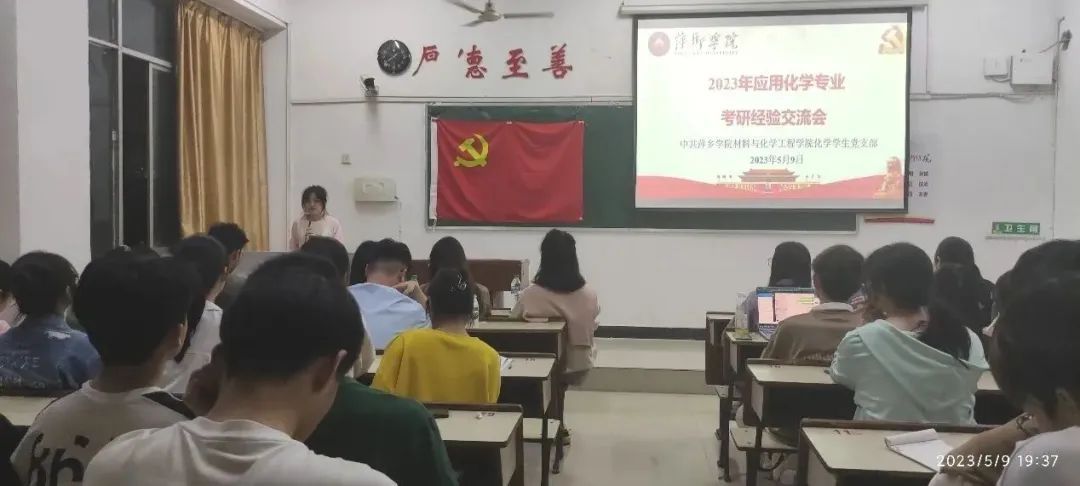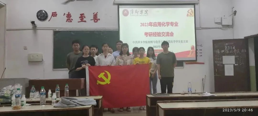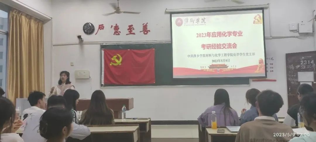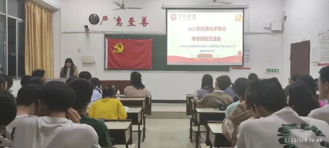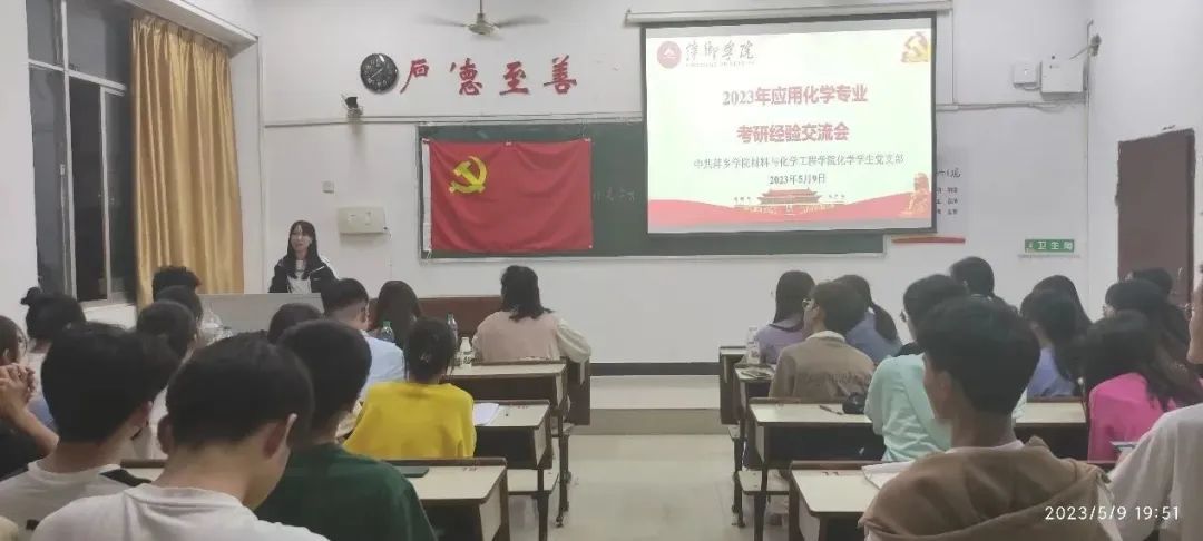 为帮助同学们树立更为清晰的考研认知,提高同学们的备考效率,做好“研”途路上的学业规划,2023年5月9日晚19:00,由化学员工党支部主办的应用化学专业2023届考研学子经验交流会于鼎新楼2314成功举行。