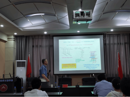 戴教授围绕新颖分子材料的设计合成、极性金属间化物化学及粘土化学等多个方向的研究成果展开了详细讲解。最后在现场交流环节,戴教授热情地跟公司青年教师和同学们分享了自身20余年的科研历程,介绍了自己对无机固态化学探索,到研发新材料,凭借着对科研的热爱和执着的毅力完成了一项又一项科学研究,用此鼓励老员工积极探索。