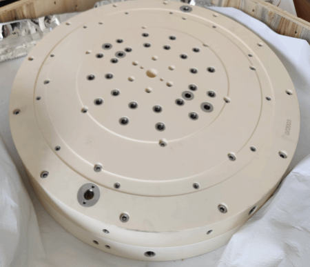 高性能材料是先进信息技术的基石,是国外对我国重点打压和技术封锁的领域。精密陶瓷部件是整个泛半导体制造产业的基础,其中,本次参赛项目涉及的大尺寸陶瓷是关键卡脖子部件,大部分产品都依赖进口。目前,半导体领域用陶瓷产品和技术主要由日本、美国和韩国控制,例如日本 Kyocera(京瓷)、ASUZAC、Sinto 等公司,具备生产各种大尺寸结构陶瓷部件的能力。国产大尺寸氧化铝等陶瓷部件普遍存在强度低、抗热震性差、容易掉渣等问题,只能在蓝宝石等要求较低的产业应用,尚无法在半导体芯片制造装备中应用。针对这些问题,顺鹏新材利用自身产业优势,开展了自发凝固成型新技术在高性能陶瓷制备方面实用化技术的研究。突破了从粉体到陶瓷的一系列瓶颈难题,成功制备出大尺寸高性能氧化铝陶瓷材料。相比于国内现有成型技术制备的大尺寸氧化铝陶瓷,自发凝固成型制备的陶瓷部件具有明显的性能提升。经丁文江、张联盟和谢毅等多位院士,以及三安光电为代表的多家头部企业综合评价,项目产品达到了国际先进水平,成为实现替代进口材料的最佳选择。