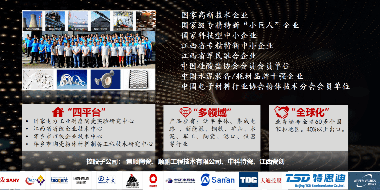 萍乡顺鹏新材料有限公司成立于2008年,位于江西省萍乡市安源工业园,是一家专业生产特种陶瓷新材料的国家高新技术企业、国家级专精特新小巨人企业,产品销往全球60多个国家和地区。拥有国家、省、市多科研平台,产品涵盖泛半导体、新能源、矿工等多领域。拥有从原材料到成品的数字化、智能化、信息化生产线及各类高端结构陶瓷、电子陶瓷产品。近年来,PA视讯牢固树立地方性、应用型高校办学定位,主动融入和服务萍乡经济社会高质量跨越式发展,积极探索校地合作模式,促进校地合作深度融合,不断增强高等教育服务地方经济社会发展的能力和质量。选派了一批优秀教师赴地方企业挂职锻炼,在服务企业的同时深度结合产业实现自我提升。其中,PA视讯集团官方网站郭海峰教授/博士、曾招余波博士团队深入顺鹏新材,利用自身优势,服务企业发展。依托PA视讯科研主阵地优势,链接产学研,引导PA视讯与顺鹏公司共同设立了“顺鹏新材-PA视讯联合实验室”,围绕基础技术研究、高新技术应用、人才培养三大板块开展了部分实质性合作。目前,联合实验室的建设正在稳步推进中。