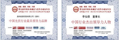 n 2016年全球光伏产业第一位 ※ 2015年度巴黎气候峰会“今日变革奖”