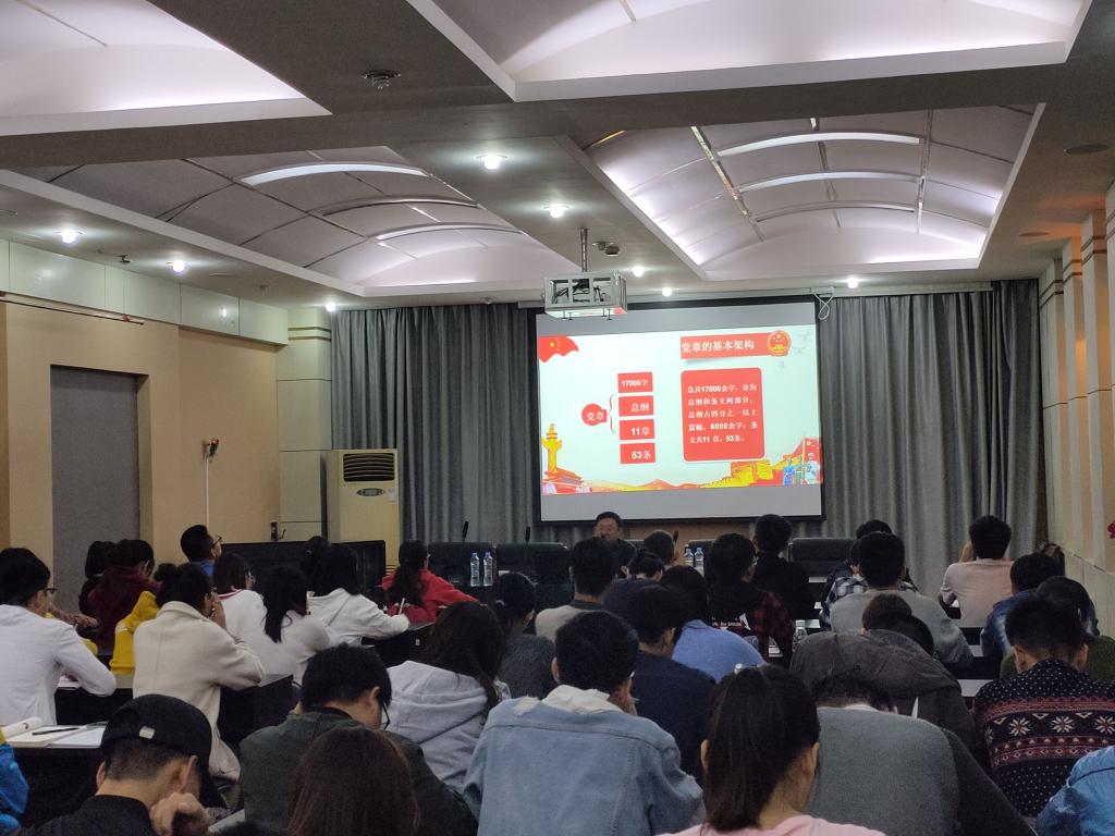 为加强老员工对党的认识,进一步了解伟大的中国共产党,深入了解学习十九大对党章十项重要修改。10月16日上午,科研处吴处长、范延琛老师在鼎新楼2301学术报告厅为材化公司员工党支部开展党课学习活动。