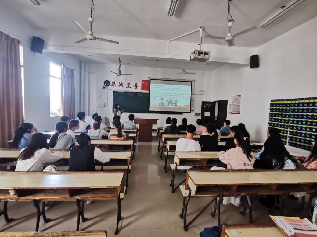 辅导员危亮老师给同学们分享的主题为“心中有理想 奋斗不止步”,讲述了血雨腥风的革命岁月里赵一曼同志的英雄事迹,讲述了筚路蓝缕的建设时期铁人王进喜的模范事迹,在春潮涌动的改革年代华西村老书记吴仁宝的事迹,讲述了在砥砺奋进的新时代,老英雄张富清同志的事迹。同学们懂得了共同的理想信念,让一代代的共产党人凝聚起来,不畏艰难、不怕牺牲而坚守初心的信念和意志,支撑着中国共产党一路走来,走到今天,走向未来。
