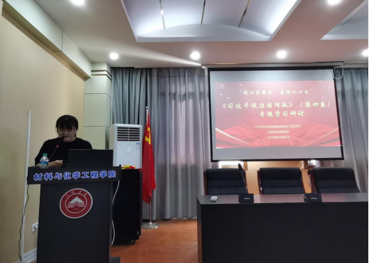 盛世华诞,共同研讨。活动第一项,由材料员工党支部书记李鸣主持开展《习近平谈治国理政》(第四卷)专题学习研讨会,首先李鸣带领全体党员一起学习,她谈及第四卷中蕴含真理力量、思想力量、智慧力量、人格力量的金句,是指引工作方向的明灯,并且强调全体党员同志要学深悟透、入脑入心、读懂用好、见行见效,更加坚定用习近平新时代中国特色社会主义四线武装头脑、指导实践、推动工作,更加自觉用党的创新理论解决中国发展的实际问题,真正做到虔诚而执着、至信而深厚、笃行而不怠,努力完成历史赋予我们的使命和责任,以实际行动迎接党的二十大胜利召开。最后,林青云同志和杨思铭同志分别就自身实际学习情况发表自己的学习感悟。