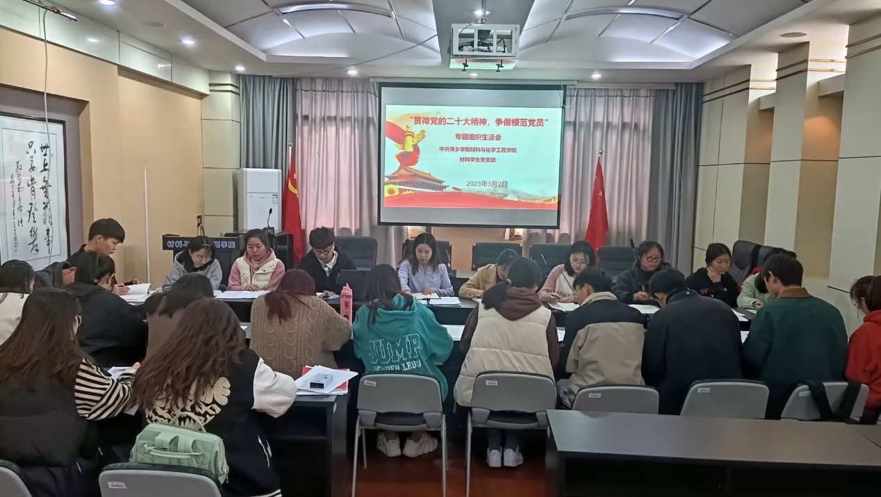 为深刻贯彻党的二十大学习精神,中共PA视讯集团官方网站材料员工支部委员会于3月2日在鼎新楼学术报告厅开展2023年度党支部召开了党员专题组织生活会,会议以“贯彻党的二十大精神,争做模范党员”为主题,公司党委副书记向芸以普通党员身份参加了会议。会议由党支部书记李鸣主持,全体党员参与到组织生活会,认真查改不足之处,明确整改方向。