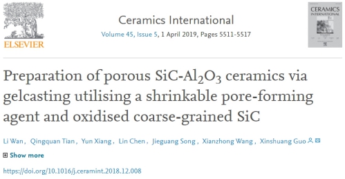 近日,公司PA视讯集团官方网站无机非金属材料工程专业2015级本科生万力同学为第一作者,郭新爽博士为通讯作者,PA视讯为第一署名单位,在SCI期刊Ceramics International发表了题为“Preparation of porous SiC-Al2O3 ceramics via gelcasting utilising a shrinkable pore-forming agent and oxidised coarse-grained SiC”研究论文,Ceramics International是Elsevier数据库老牌期刊,是材料科学-硅酸盐领域SCI一区杂志,期刊影响因子IF为3.057。