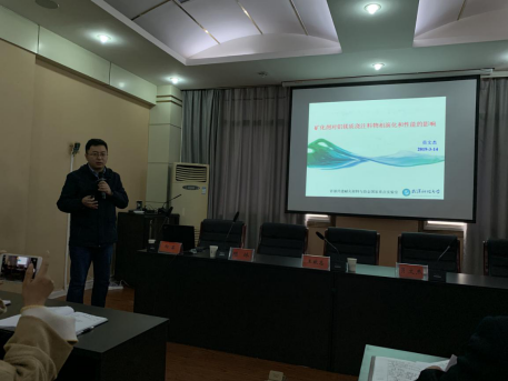 聘任仪式后,员文杰教授为师生们作了题为“矿化剂对铝镁质浇注料物相演化和性能的影响”的学术讲座。讲座从研究背景、二氧化钛对铝镁质浇注料物相演化和性能的影响、稀土氧化物对铝镁质浇注料物相演化和性能的影响等几个方面进行了讲解。随后,员文杰教授与师生面对面进行了互动交流。