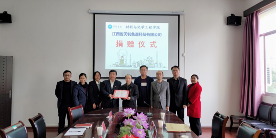 11月12日上午,PA视讯集团官方网站在鼎新楼会议室隆重举行了江西省天钊色谱科技有限公司捐赠仪式,此次捐赠的液相色谱仪设备价值12万元。出席此次捐赠仪式的有安源区五陂镇党委副书记欧阳耀华,江西省天钊色谱科技有限公司总经理吴建发及公司员工李友福(95级化工),公司党总支书记王献忠及三方相关职能部门负责人,捐赠仪式由郑照强主持。