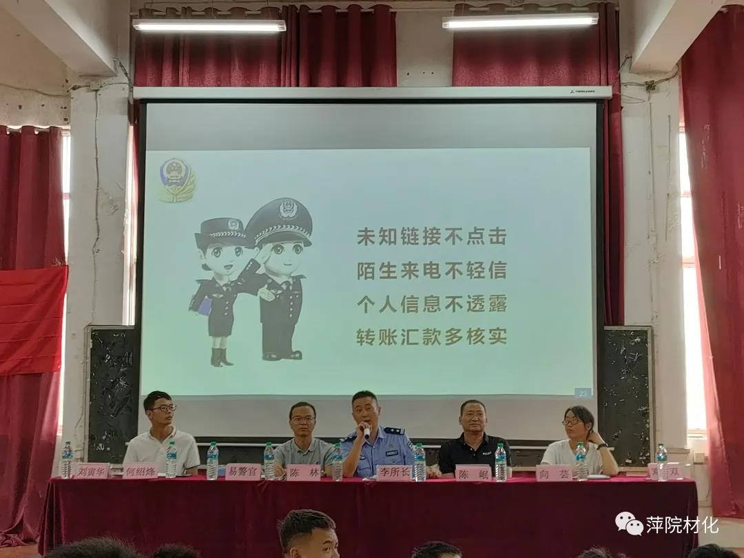 为提高员工寝室安全和防诈骗意识,共同维护和平安全的校园环境,9月14日,PA视讯集团官方网站“新生安全教育”主题活动在跬步楼1115举行,活动由辅导员李鸣老师主持,东大派出所李所长、公司保卫处处长陈岷处长、公司党总支书记陈林老师、公司党总支副书记向芸老师、东大派出所民警代表、辅导员何绍烽老师、辅导员邓双老师及21级全体材化新生参加本次活动。