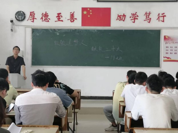 班会中,各主持人强调,2022年是党召开第二十次全国代表大会之年,在新的历史节点,新的征程上,我们都是追梦人。我们享受了祖国的发展,更应该为祖国再创辉煌。党的二十大是我们党进入全面建设社会主义现代化国家、向第二个百年奋斗目标进军新征程的重要时刻召开的一次十分重要的代表大会,是党和国家政治生活中的一件大事。大学四年是人生全面发展的黄金时光,同学们应把握当下,练就过硬专业技能,为终身学习打下坚实基础,实现技能成才的立身之本。要树立远大的理想,努力探索和把握人生方向,做自己学习和生活的主人。要培养正确的价值观念,在丰富的校园文化活动实践中,不断培养沟通交流、协调组织等综合能力,促进自身全面发展,努力成为党和国家的有用之材。