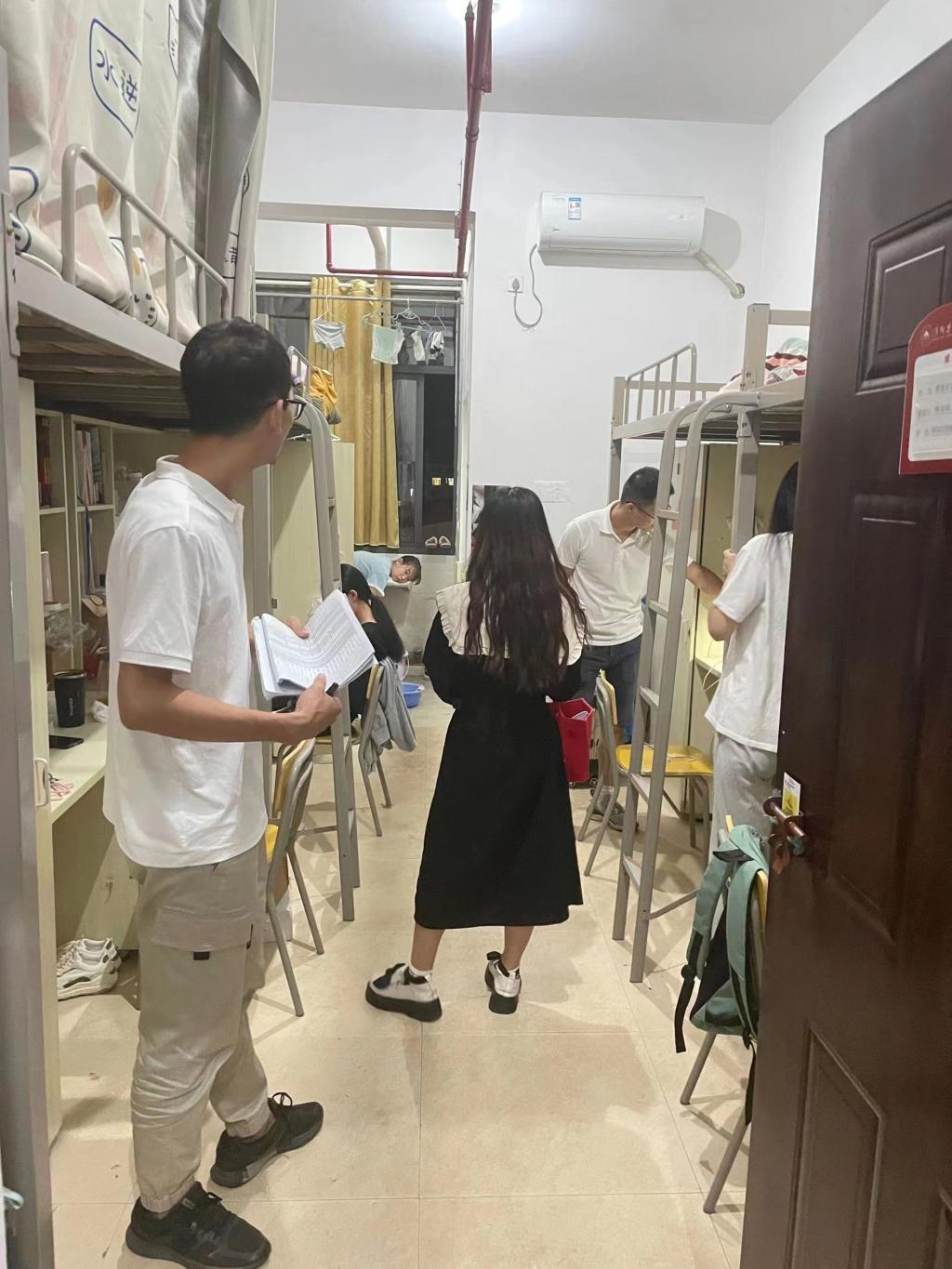 本次检查内容包括宿舍卫生检查和宿舍安全用电。在检查中,几位老师对同学们所做不足之处进行指出,并与员工就如何创建文明宿舍进行交谈,同学们也对如何创建文明宿舍进行思考,并提出了自己的想法、意见,气氛十分和谐融洽,最后,还叮嘱同学们早晚温差大,要注意保暖。
