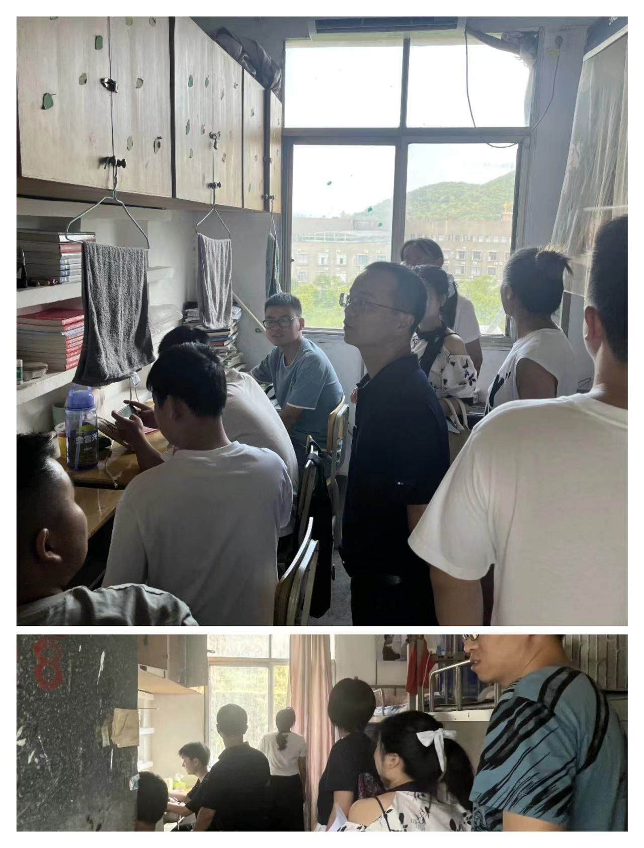 2023年9月15日晚上7点30分,材化公司陈林书记,副书记向芸,学工科长危亮以及辅导员梅升继老师的一同前往下,去检查了员工的宿舍卫生情况,宿舍是老员工生活的主要场所,陈书记表示宿舍文化的建设月有利于促进宿舍成员间的团结,营造良好的宿舍文化。