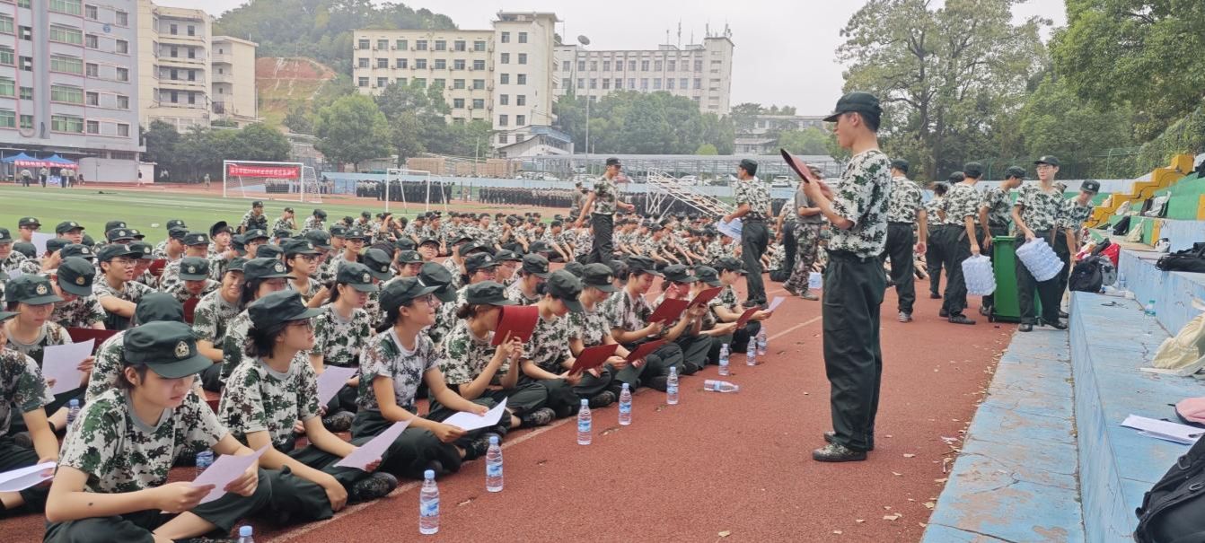 军训不只有严格训练,也有文化浸润与团队熔炼。诵读活动中,新生们捧起文稿,在操场上诵读经典、传递信念,让文化滋养心灵;拉歌环节,各连队歌声嘹亮,用旋律抒发青春豪情,赛场成为欢乐与团结的海洋。团队游戏里,接力、协作挑战等项目,让同学们在互动中打破隔阂,凝聚起集体向心力,诠释“1+1>2”的团队精神。